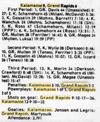 26 12/16/78 GR vs Kalamazoo A 2 7 L |
